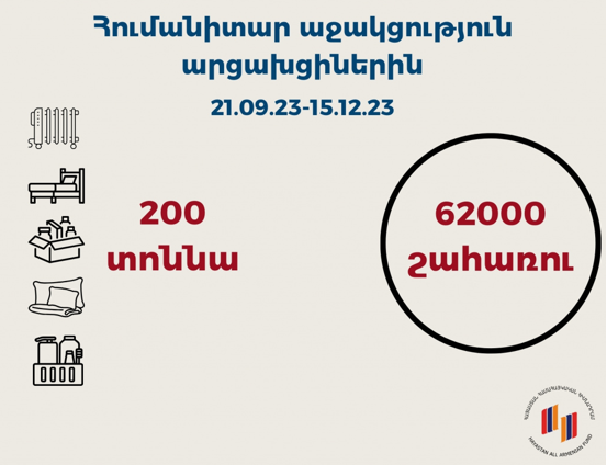 Redau schematic si concentrat asistența umanitară de urgență pe care și-a asumat-o și îndeplinit-o Fondul Armenia în perioada 21 septembrie-15 decembrie 2023 (200 tone de ajutoare – articole de igienă personală, paturi și așternuturi, încălzitoare, alimente neperisabile pentru copii, etc. respectiv 62.000 de beneficiari).