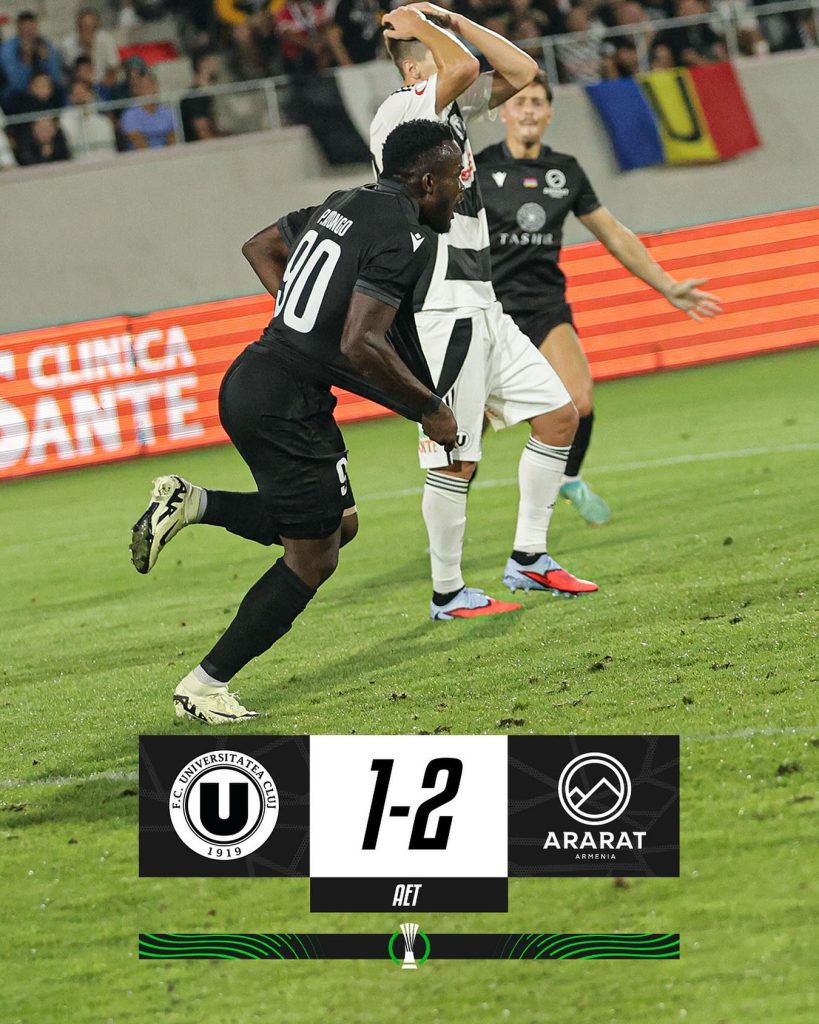 Peste 50 de amatori ai fotbalului din Erevan, numărând aici și stafful tehnic al grupării din capitala Armeniei, au plecat bucuroși din Sibiu, echipa lor favorită Ararat câștigând cu scorul de 2-1 (0-1) partida cu ”U” Cluj-Napoca din cadrul turului doi din Conference League. Oaspeții au prestat un joc excelent, meritând pe deplin victoria în dauna studenților clujeni. Golurile au fost marcate de Kamo Hovhannisyan și Paul Ayonga, fotbalist din Ghana. Ce nu au reușit acasă, iată fotbaliștii armeni au izbutit pe terenul adversarilor. De fapt, în deplasarea de pe malul Cibinului, fiindcă ClujArena a fost ocupată cu festivalul Untold. O surpriză plăcută pentru sportul din Armenia, dar și pentru comunitățile armenești din Cluj-Napoca sau Gherla.