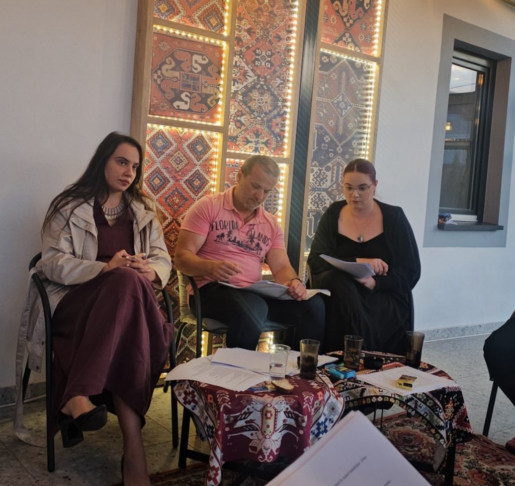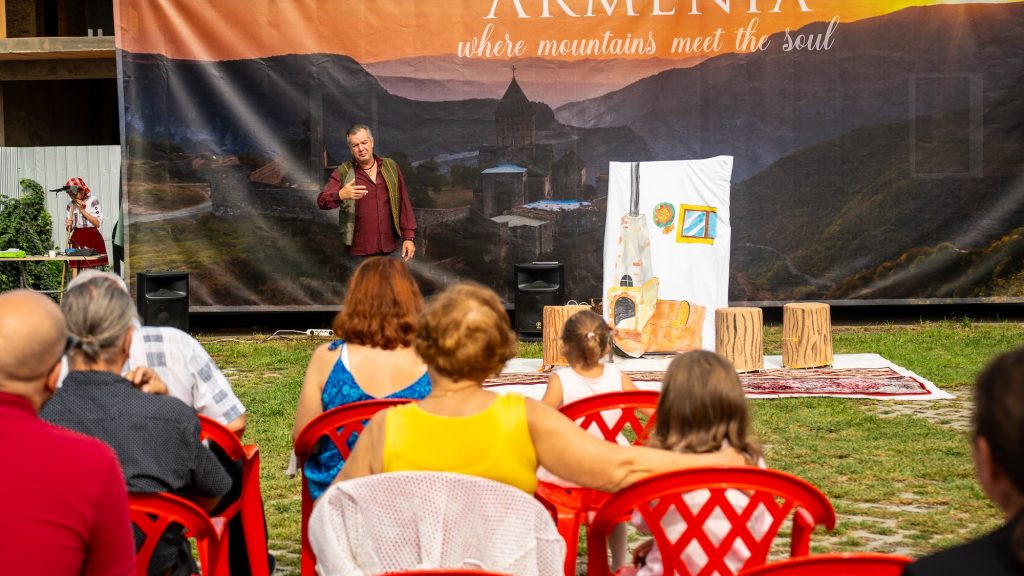 Duminică, 14 septembrie, festivalul a continuat cu „Basme armenești de la Moș Suren”, un spectacol-lectură cu păpuși, inspirat din poveștile lui Suren Muradyan traduse de Arsen Arzumanyan. Iar seara, am asistat la spectacolul-lectură „Oamenii cavernelor” de William Saroyan, pregătit de Florin Kevorkian. Piesa lui Saroyan pune accent pe universalitatea mesajului, iar montarea scoate la lumină ideea de comunitate a celor „invizibili”, oameni pentru care teatrul este ultima formă de rezistență și libertate. Actorii sunt Armine Vosganian, Denisa Mikesz, Florin Kevorkian și Valentin Braniște Bolat.