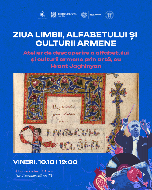 De la ora 19:00, publicul este invitat în același spațiu la Atelierul de descoperire a alfabetului și culturii armene prin artă, susținut de Hrant Jaghinyan, graphic designer și Ambasador al Tineretului din Diaspora Republicii Armenia în România. Atelierul va explora simbolistica literelor armene, originea alfabetului creat de Mesrop Maștoț și importanța lui în păstrarea limbii de-a lungul secolelor.